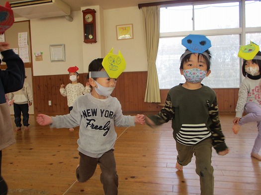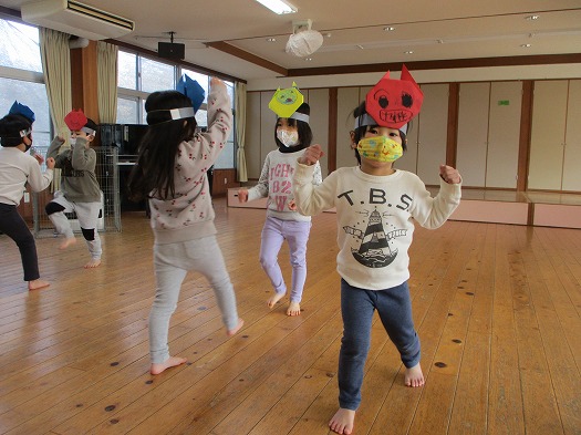 2022年02月10日 強いぞ~ 4歳児 ほし 2月3日 節分の日にこどもたちが手作りした鬼のお面をつけて 『おにのパンツ』を踊りました。 鬼のお面をつけていることもあってか 「強いぞ~♪」のポーズが、いつもよりも強そうなほし組鬼でした。 一覧へ戻る