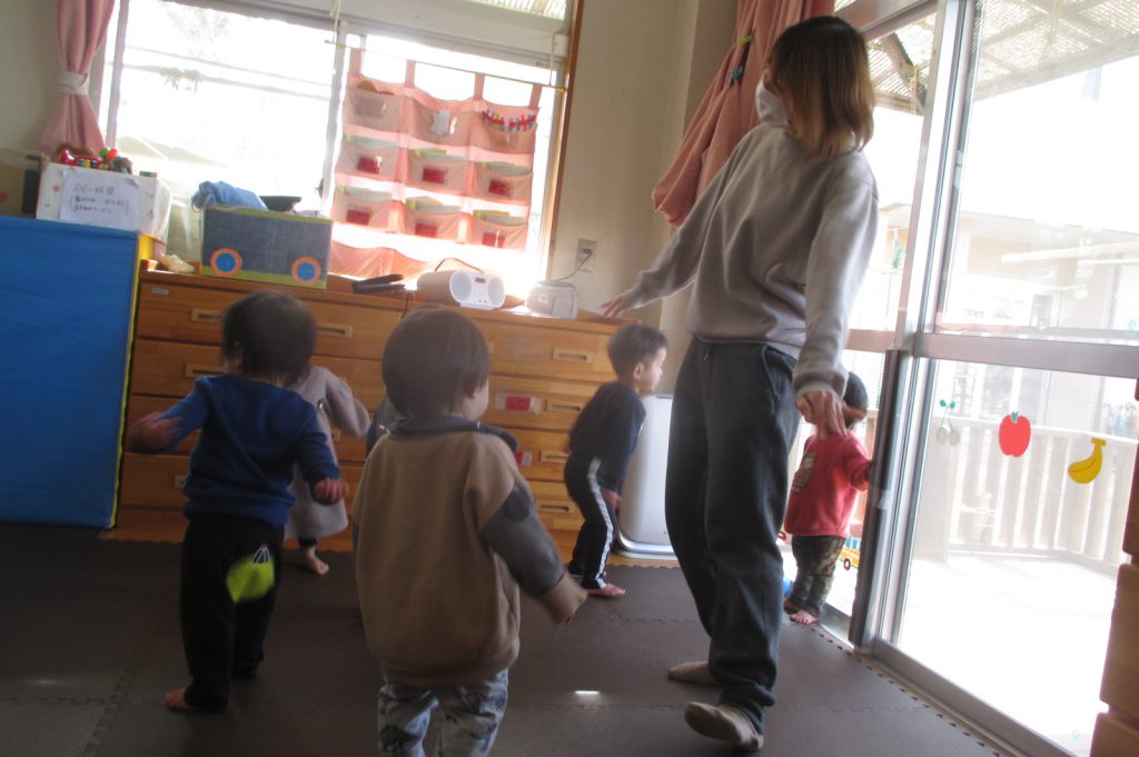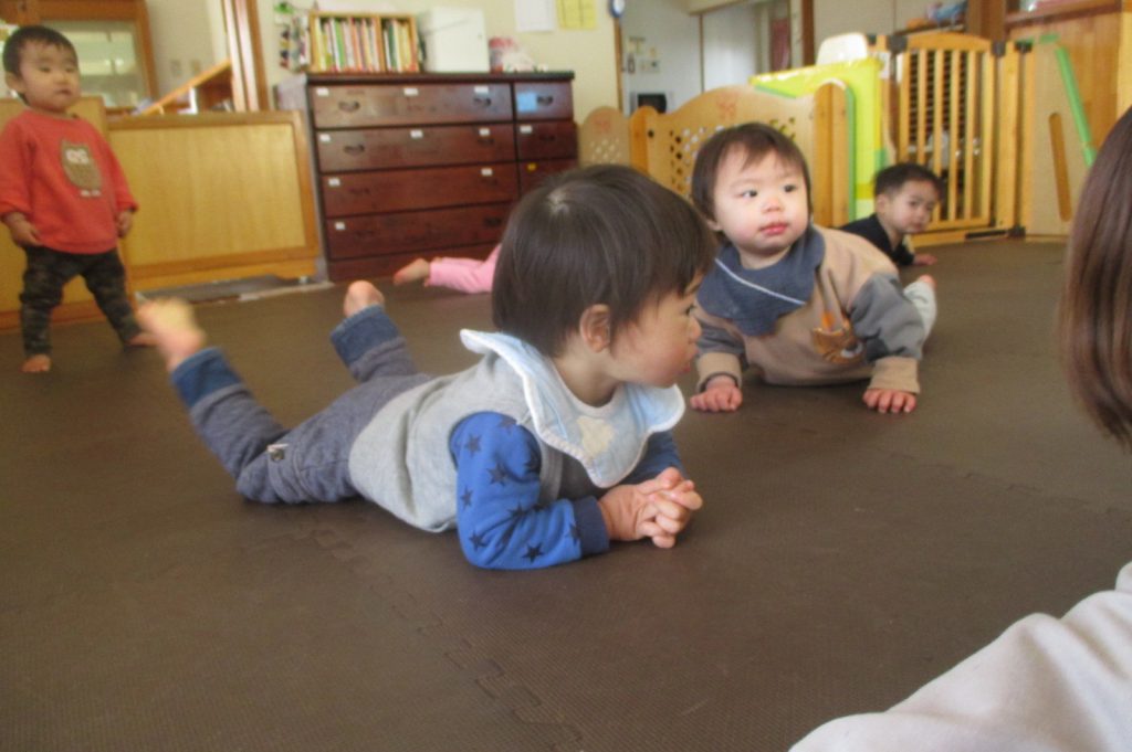 2022年02月21日 次は何のうたかな? 0歳児 はな おどりが大好きなこどもたち。CDデッキを持ってくると“踊りたい”と近くへ来ています。 おどりの中でもお気に入りなのが、“ペンギンたいそう”や“エビカニクス”、“ピカピカブー”などです。 室内でもハイハイをしたり飛ぼうとしたり、両手をあげたりと身体を動かすことを楽しんでいます。 一覧へ戻る