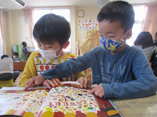 2022年02月24日 よく見て探して 5歳児 そら 新しい絵本“ミッケ”をこどもたちに紹介しました。 好きなあそびの時間に早速手に取るこどもたち。 すぐに見つけることができるものや、よく見ないと分からないものまでたくさんあり、一生懸命探していました。 探している時の表情は真剣そのもの。 見つけることができると、「あった!」「え、どこどこ!?」「やっと見つけた~」と嬉しそうです。 しばらくミッケブームが続きそうです。 どこにあるかな これじゃないかな? 一覧へ戻る