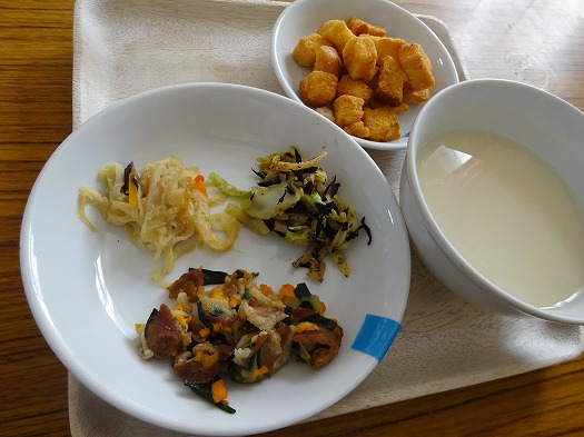 『ひじきとれんこんのサラダ』は酢、みそ、しょうゆ、ごま油の味つけです。