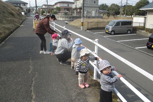 どんぐり公園で遊んでいるゆきぐみさんを見つけたり車が通るのを見たりと、