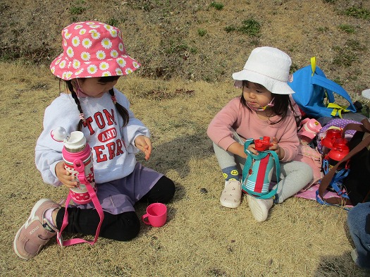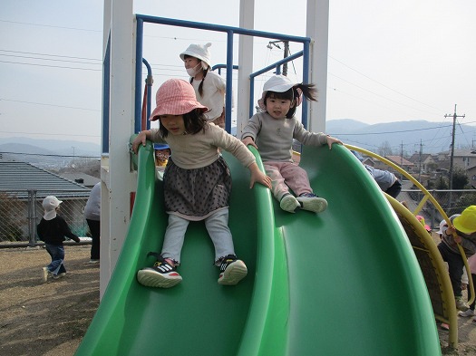 2022年03月14日 たくさん歩いたね 2歳児 にじ 健脚活動でにじ公園まで行きました。 少し長い距離ですが友だちと手をつないでしっかり歩いていたこどもたち。 にじ公園につくと、すべり台やぶらんこをしたり、お茶タイムをしたりして楽しみました。 一覧へ戻る