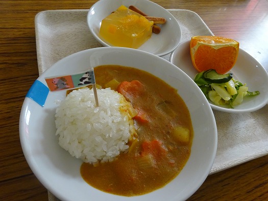 誕生会にちなんで、カレーライスにつまようじで作った旗を立てています。