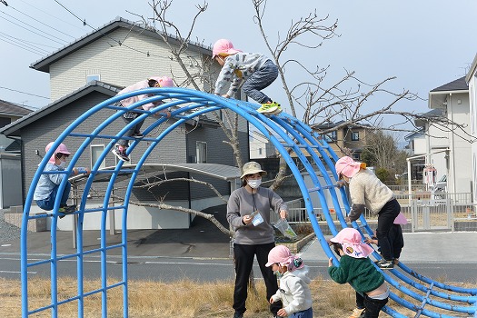 2022年03月14日 健脚活動 3歳児 つき つき組最後の健脚は、リュックを背負ってちょっぴり遠出です。 信号機のある横断歩道を通って、広い道路も上手に渡りました。 珍しい遊具のある目的地の「ゆば公園」で遊んだあとは、 どんぐり公園に移動してお弁当を食べました。 ちょっぴり疲れたけど、またひとつ楽しい思い出が増えました。 一覧へ戻る