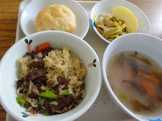 2022年03月22日 給食室(3月17日の給食、おやつ) 給食室 昼食 ・牛肉とごぼうごはん ・大根の塩昆布和え ・のりのみそ汁 ・りんご おやつ ・フォカッチャ ・牛乳 『牛肉とごぼうごはん』はカミカミメニューです。 こどもたちもよく噛んでもりもりとおかわりをしていました。 『大根の塩昆布和え』にはゆずも少し入っているので さっぱりとした味わいでした。 おやつの『フォカッチャ』は新メニューです。 オリーブオイルがたっぷりと入ったイタリア発祥のパンです。 一覧へ戻る
