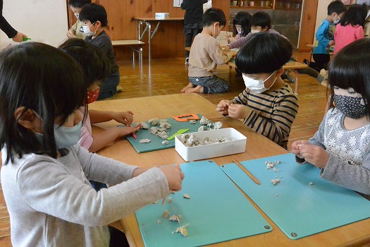 粘土が大好きなこどもたちは団子やきのこなど思い思いに色々なものを製作して楽しんでいました。