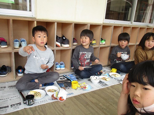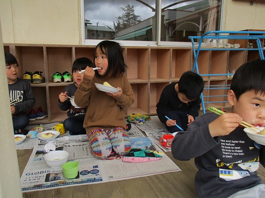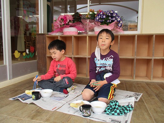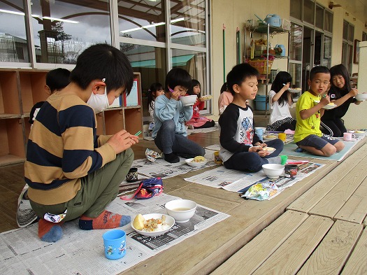 気温も温かく、いつもと違う気分で楽しい給食となりました。