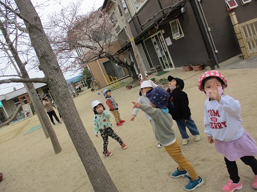 2022年04月04日 桜がさいてるね 2歳児 にじ 園庭に出ると桜が咲いているのに気づいたこどもたち。 「さくらがさいてるー」と近くまで見に行っていました。 「ピンクいろだね」などと言いながら見ていました。 一覧へ戻る