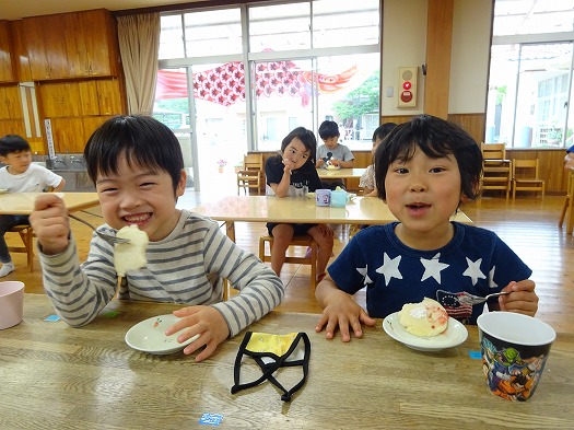 もちもち食感のケーキに苦戦していましたが、よく噛んで食べていました。
