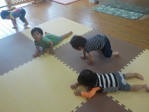 2022年05月26日 おどりをおどりました 1歳児 ゆき おどることが好きなこどもたちです。 保育者が、CDをかけようとすると”何だろう”と近寄り、見ています。 音楽に合わせて、ハイハイをしたり走ったり腕を伸ばしたりと、楽しく身体を動かしています。 一覧へ戻る