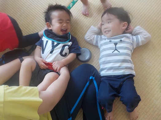 2022年06月03日 くすぐったい 1歳児 ゆき ♪一本橋こちょこちょのうたに合わせて身体をくすぐると、ニコニコ笑顔になるこどもたちです。友だちが楽しそうにしている様子を見て“ぼくにもして”と周りに集まってきます。 一対一で目と目を合わせ、ゆったりとしたふれあいの時間を大切にしています。 一覧へ戻る