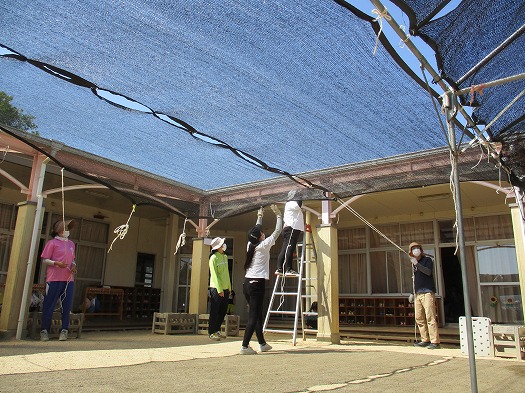 こうしたほうがもっと日影ができるかもしれないな、このひもは劣化しているから新しくしようなどいろいろな声を一つにしていきます