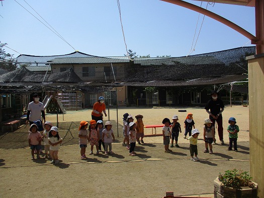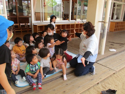 2022年06月03日 歯磨きキャラバン 2歳児 にじ 歯磨きキャラバンに参加しました。 虫歯バイキンが怖く涙が出る子もいましたが、踊りが始まると真剣に見ていました。 歯磨きキャラバンが終わった後ももう一度みんなで一緒に踊ると、保育者の真似をしながらリズムにのってダンス。 涙も止まって笑顔いっぱいのこどもたちでした。 一覧へ戻る