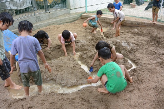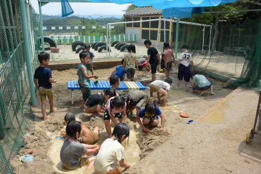 2022年06月23日 どろんこ 5歳児 そら 本格的な水あそび・どろんこあそびシーズンの到来です。 まだ少し冷たいと感じる水もお構いなしのこどもたち! 女の子を中心に温泉の掘削作業(写真手前)に励み、男の子は自然と土木工事に精を出します。 一覧へ戻る