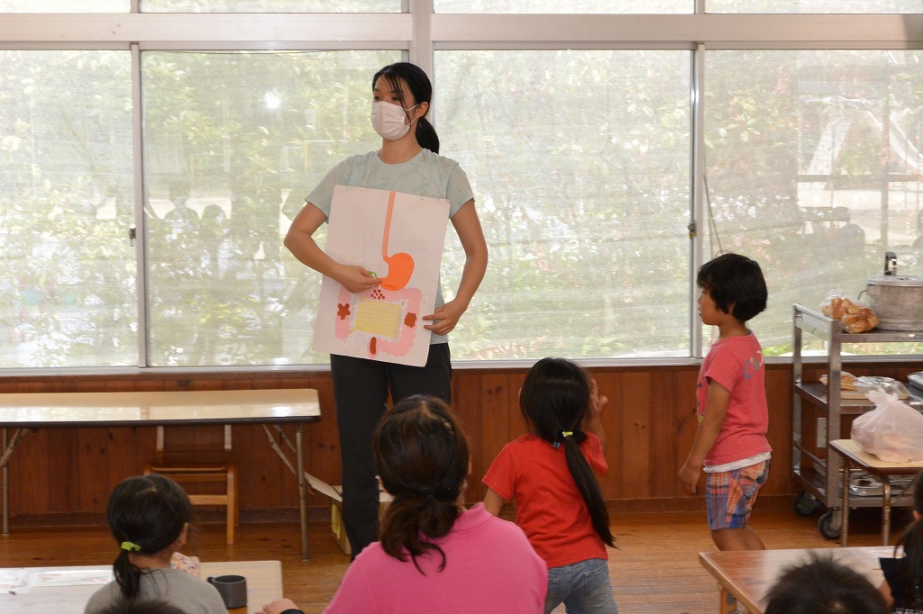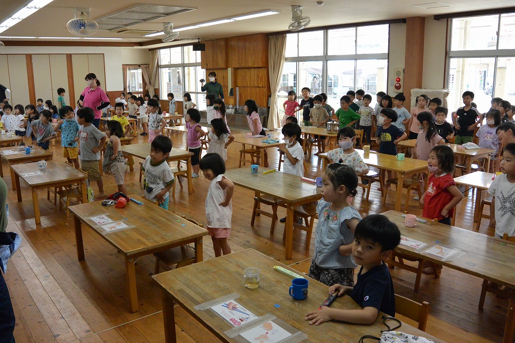 2022年06月29日 食べる時の姿勢は体幹から… くじら(事務室) 「手のひらに太陽を」の歌に合わせてくねくね体操をしました。 「くの字運動」→「S字運動」↓ 「ラディアンドウソク」と言って、肘と膝を引っ付ける動き体操は、この3つの動きを交互に行います。 食べる時の姿勢がよくなると歯の嚙み合わせがよくなる。 食べ物の消化・吸収がよくなることを伝えました。 くねくね体操をすることで、体幹が鍛えられるそうです。ご家庭でも一緒に体操してみてくださいね。 一覧へ戻る