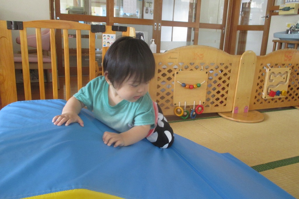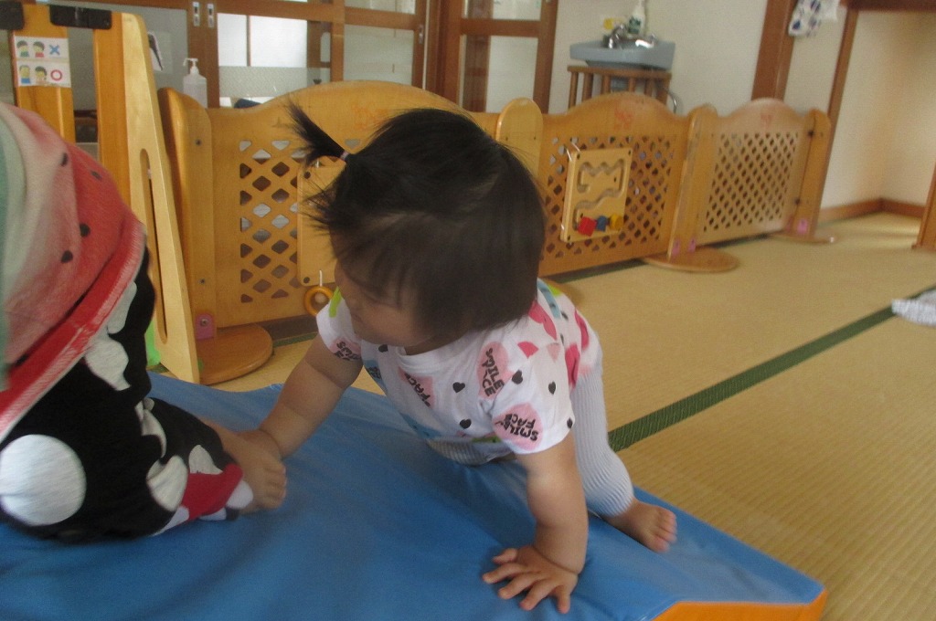 おりる時も後ろを向いておりています。てっぺんで友だちと顔を合わせてにこっとする顔に保育者は癒されます。