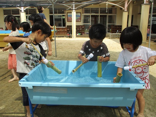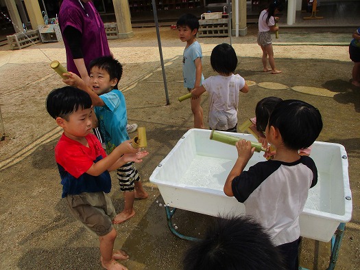 2022年07月16日 水鉄砲 4歳児 ほし 園庭で水鉄砲を使いあそびました。 水槽の水を水鉄砲に入れぴゅーっと的を狙って水を飛ばしていました。 何度も繰り返し水鉄砲で的を狙い、とても良い表情で遊んでいるこどもたちでした。 一覧へ戻る