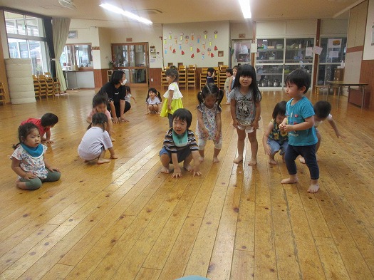 2022年07月07日 いろいろな生き物になって 未分類 ぞうやカエル、アリなどに変身しました。 その生き物のピアノ演奏が流れると、曲に合った生き物になりきっています。 よく耳を澄ませて、曲が変わると急いで動きを変えます。 反応が早いこどもたちでした。 一覧へ戻る