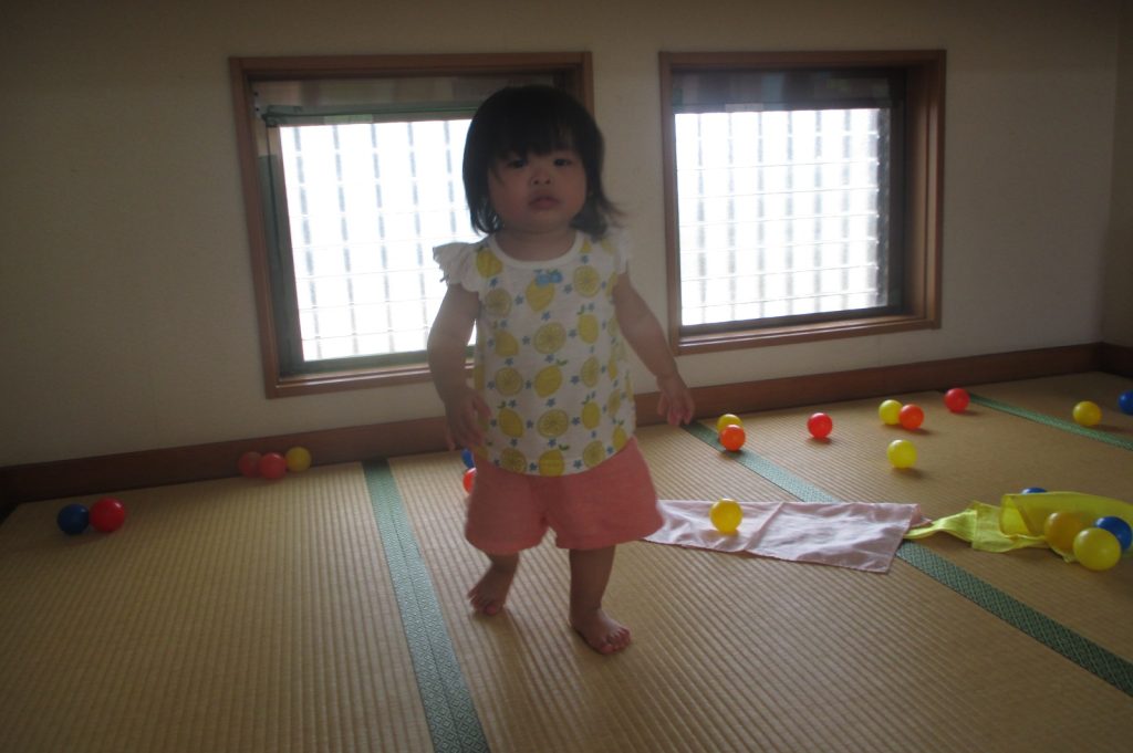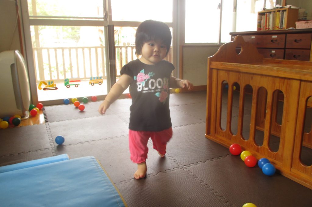 部屋を模様替えし、広くなったので自由に歩き回るこどもたちです。