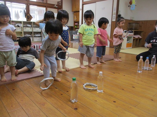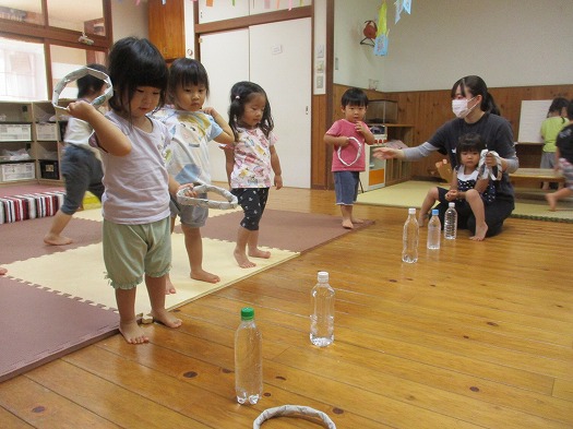 輪が入るまで何度も挑戦し、入ると「やったー」と嬉しそうでした。