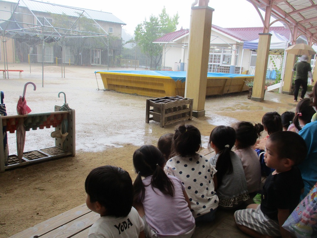 久しぶりに見る豪雨。雨が力強く地面に打ち付ける様子に釘付け。