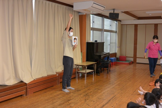 つき組では、「部屋で走ってはいけないよ」と声を掛ける園児がいます。その子は、実際に部屋の中を走ってこけてけがをしたことがある子です。自分が経験をしたことをともだちに伝えています。