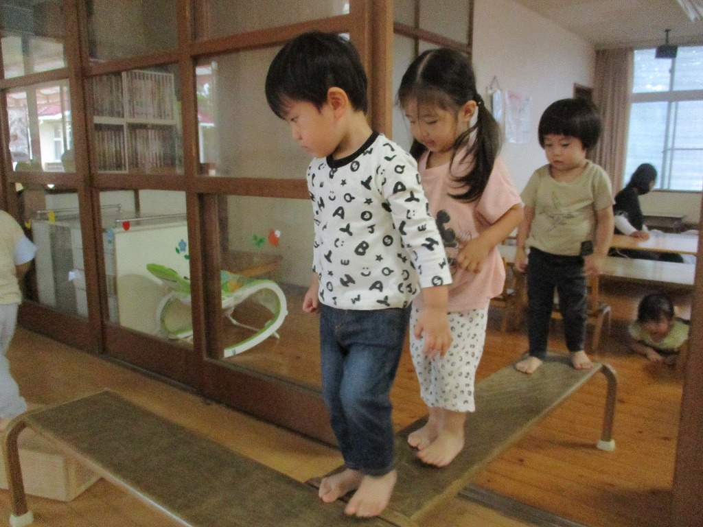 2022年09月29日 室内サーキット 2歳児 にじ にじランチルームから廊下、にじの部屋まで続く長いサーキット。 雨が降り外で遊べず、少し悲しそうな表情のこどもたちも、サーキットをすると汗びっしょりになるまで何度も楽しんでいました。 回数を重ねるごとに、くぐったり歩いたりするスピードも速くなっています。 一覧へ戻る