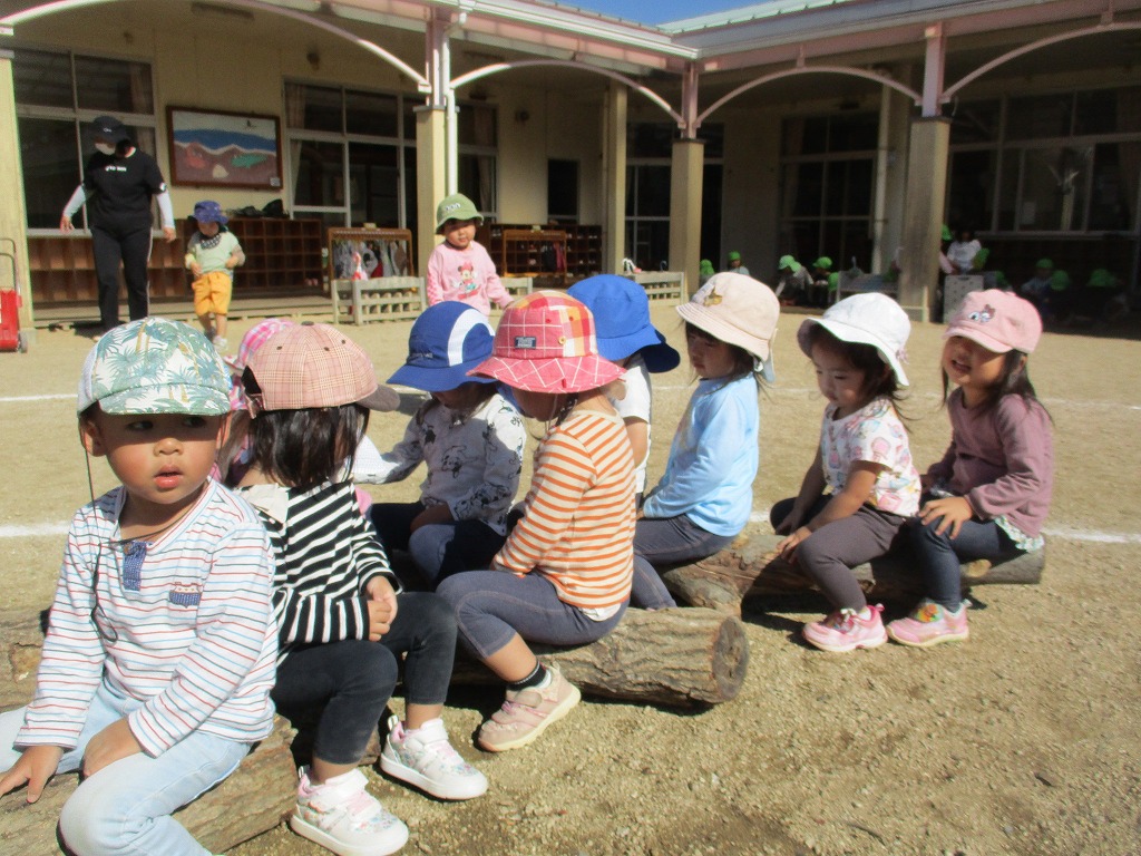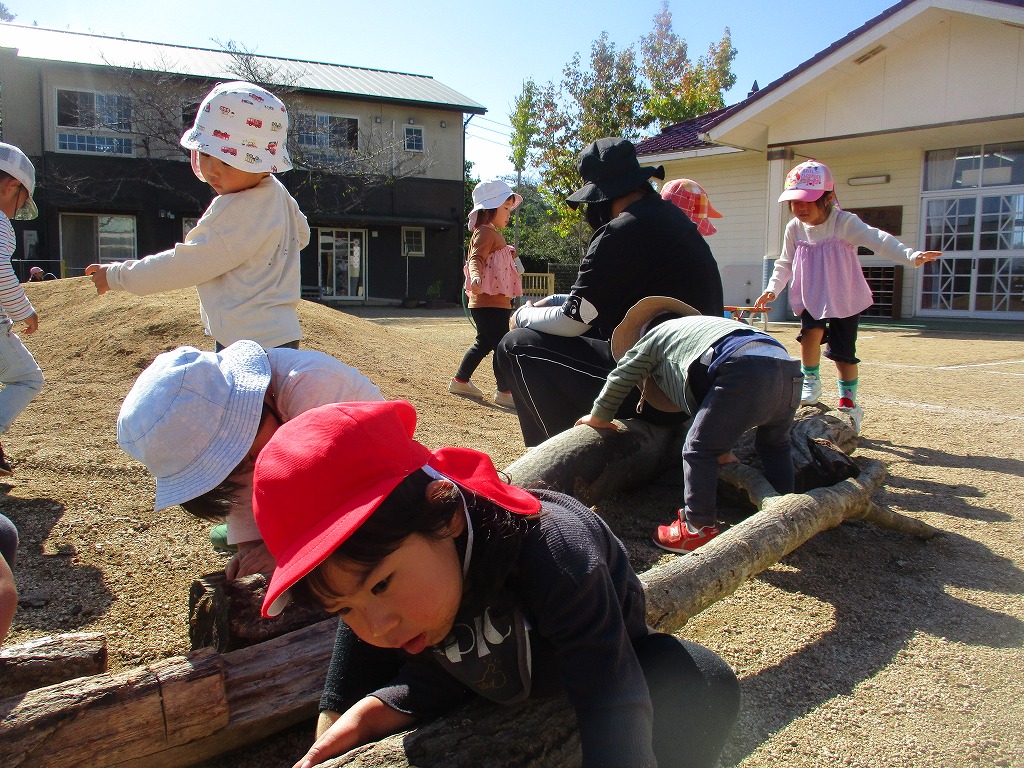 座ったり登ったり、電車に見立てて遊んだりと一つの木で様々なあそびかたをするこどもたちの姿がみられました。