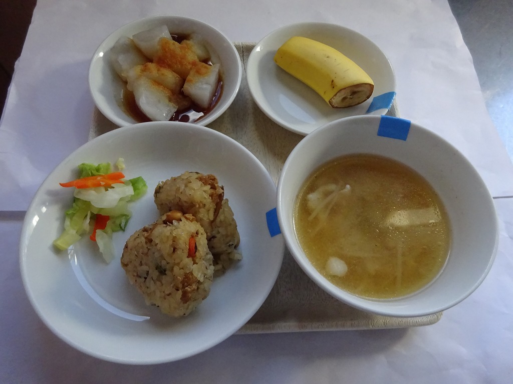 2022年10月14日 給食室(10月13日の給食、おやつ) 給食室 昼食 ・まごわやさしいごはん ・キャベツのもみ漬け ・薩摩汁 ・バナナ おやつ ・黒糖きなこわらび餅 『まごわやさしいごはん』とは、“和の食材の頭文字を覚えやすく語呂合わせにした合言葉”のこと。「ま」=豆、「ご」=ごま、「わ」=わかめ、「や」=野菜、「さ」=魚、「し」=しいたけ、「い」=いも、の略です。これらの食材を取り入れている炊き込みご飯です。 一覧へ戻る