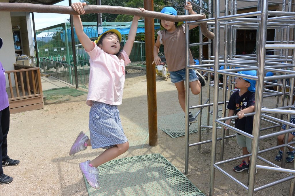 2022年10月14日 棒渡り 5歳児 そら 地域の方からいただいた木を使って、棒渡りを設置するとすぐ、挑戦が始まりました。 がんばり豆を手に作りながら、何度も渡っています。 「ここまでいけたよ」と報告を受けるたびに、一緒に喜びました。 一覧へ戻る