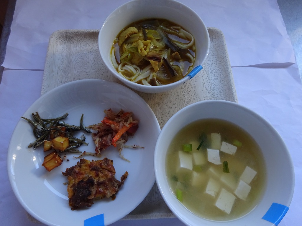 2022年10月25日 給食室(10月24日の給食、おやつ) 給食室 昼食 ・ごはん ・とん平焼き ・煮干しとさつま芋の甘辛煮 ・もやしの梅おかか和え ・あさりのみそ汁 おやつ ・カレーうどん 『煮干しとさつま芋の甘辛煮』は、 煮干しとさつま芋を油で揚げて、 甘辛のたれでからめました。 季節の野菜が入っていて、 煮干しだけより食べやすく、 よく食べていました。 おやつの『カレーうどん』は、 やっぱり人気でした。 一覧へ戻る