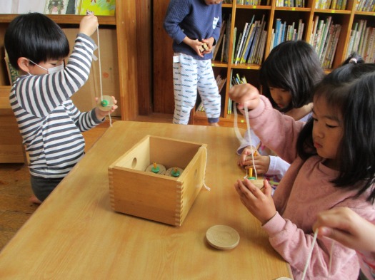 2022年11月28日 挑戦中 4歳児 ほし ほし組ではコマ回しをしている姿が多くみられます。 最初は回すのが難しく苦戦していましたが、回せる友だちや保育者に聞き何度も挑戦しています。 少しずつ回せるようになってきて嬉しそうなこどもたちです。 一覧へ戻る