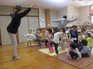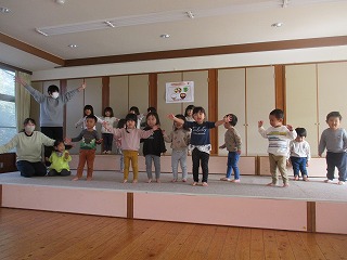 2022年11月25日 虫バイキンに変身 2歳児 にじ ホールにあるステージに慣れるため、毎日遊びに出かけています。 大好きなダンスを踊ったり、虫バイキンになりきってみたりして 楽しんでいます。 一覧へ戻る
