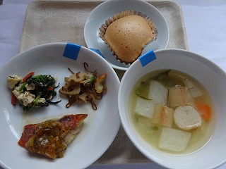 2022年12月02日 給食室(11月30日の給食、おやつ) 給食室 昼食 ・ごはん ・赤魚のねぎソース ・きんぴられんこん ・白和え ・かぶのみそ汁 おやつ ・ピザまん ・牛乳 旬の野菜、れんこん、かぶをしようしたメニューが入っていました。 れんこんは、『きんぴられんこん』で、 糸こんにゃく、ちくわ、いんげんといっしょに炒めて、 味をつけました。 かぶは、『かぶのみそ汁』で、 やわらかくなって食べやすかったです。 一覧へ戻る