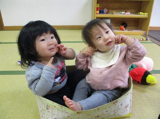 2022年12月20日 にこにこ 0歳児 はな 保育をする中でこどもたちの笑顔に癒されます。保育者が「にこにこ」と言いながら、両手の人差し指をほっぺに当てていると、こどもたちも真似をします。 周りの友だちがしているのを見て真似をし、楽しそうにしています。 一覧へ戻る