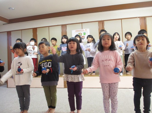 カスタネットを使ってリズムあそびを楽しんでいます。