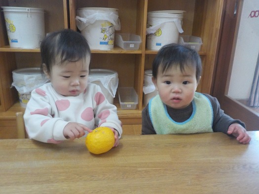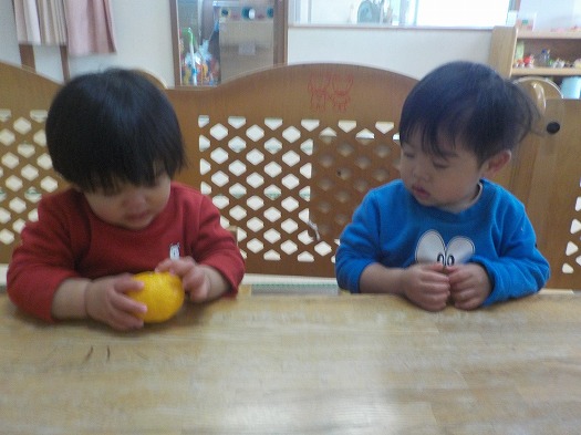 今日は、ゆずを触ったり、匂いを嗅いでみたりしました。