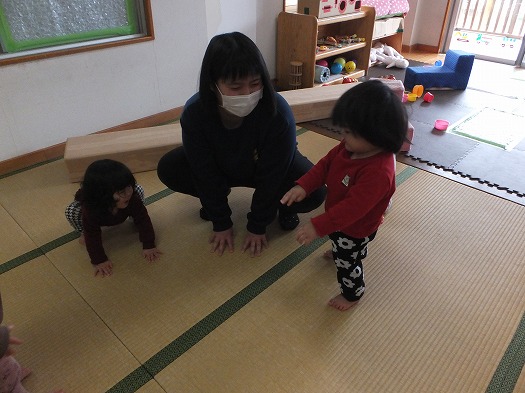 リズムをしました。身体を動かすことが好きなはな組。かえるやうさぎ、どんぐりなど保育者の真似をします。またしようね。