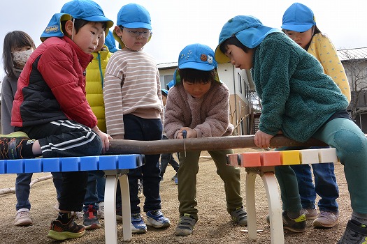 2023年03月17日 卒園製作 開始 5歳児 そら 2月15日から卒園製作の開始です こどもたちが日々、テントや隠れ家にしている廃木を使って、こわれないテント(トンネル)を作ります 今日は廃木の選定とのこぎりを使って長さの調整をしました 関心が高く食いつきは上々です(笑) 一覧へ戻る