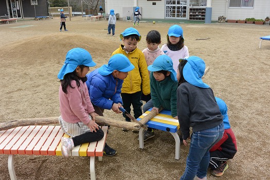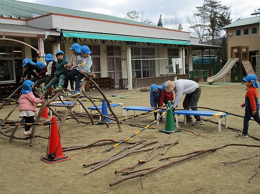2023年02月20日 卒園製作 形になりつつ 5歳児 そら 園庭をご覧いただければ、分かるように卒園製作が少しずつ形になってきました みんなで木を選定したりのこぎりで切ったり木を支えたり・・・みんなとても意欲的で協力的! 頼もしい限りです ↓ ↓ 実は この廃木は、磐山を整備してくださっているボランティア団体(あかいわ美土里の和)からご厚意でいただきました 地域の方々の想いをいっぱい積んで、保育園へ帰りました 一覧へ戻る
