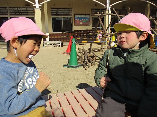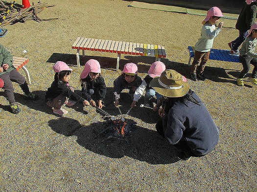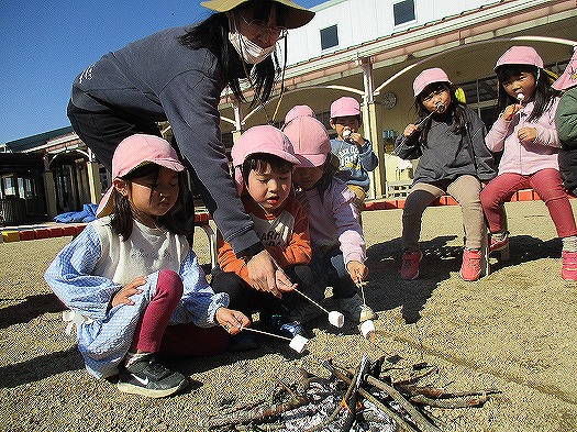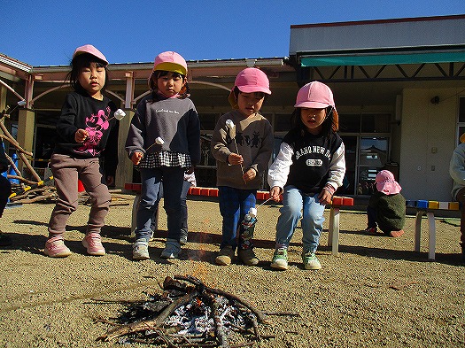焚火でマシュマロをあぶって食べました
