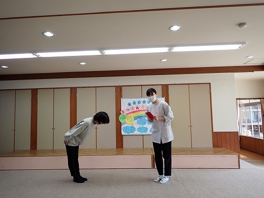 コンサートの前にまずは今年度退職される職員、異動される職員の方々へ園長より卒園証書授与が行われました