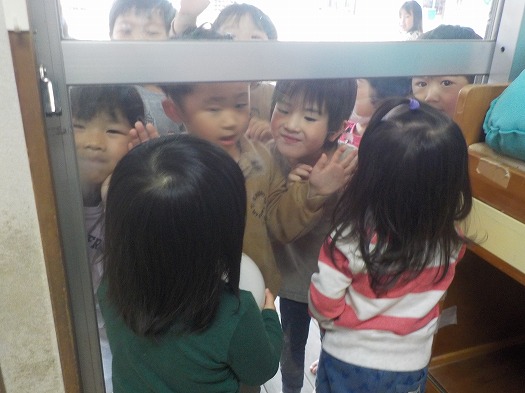 2023年04月07日 おーい! 1歳児 ゆき 4歳児 ほし 新しい保育室になり、初めてテラスにほしぐみが遊びに来ました♪ 窓越しに「おーい!」と声を掛け合って、お互いににっこり。 異年齢でのふれあいを楽しみました。 一覧へ戻る
