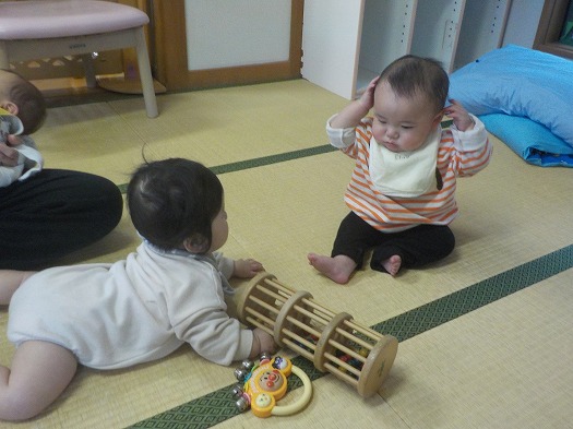 おもちゃで遊んでいると、ふっと横のお友だちが気になり…