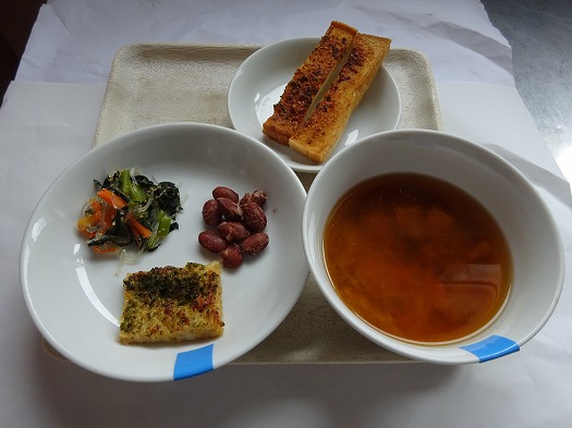 2023年04月19日 給食室(4月14日の給食、おやつ) 給食室 昼食 ・赤米入りごはん ・松風焼き ・金時豆の煮物 ・小松菜と春雨の酢の物 ・あさりの赤だし おやつ ・イタリアンラスク ・牛乳 『松風焼き』は、 鶏ミンチに玉ねぎのみじん切りと調味料(みそ、砂糖、醬油、酒)を 混ぜ合わせ、鉄板にのばして青のりをふり、 オープンで焼きました。鶏肉にみそ味があって美味しいです。 おやつの『イタリアンラスク』は、 バター、粉チーズ、パセリを混ぜたものを 食パンにぬってオープンで焼くことで、 かみかみメニューになっています。 一覧へ戻る