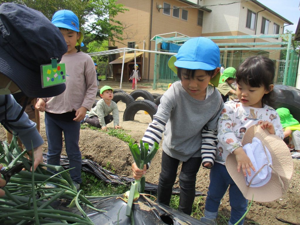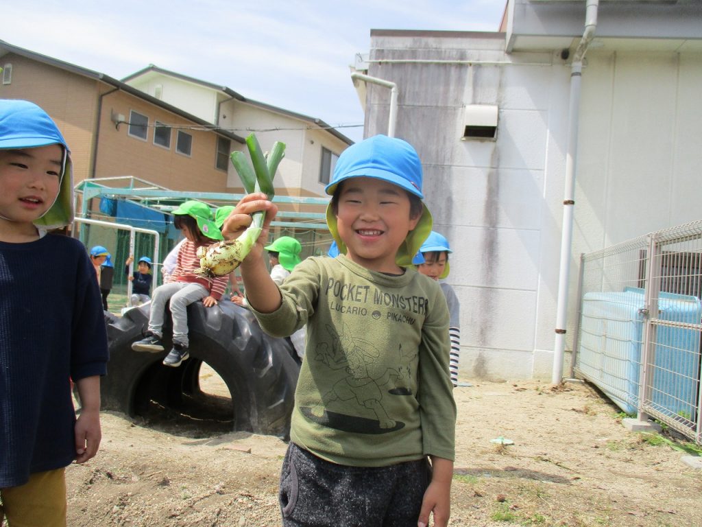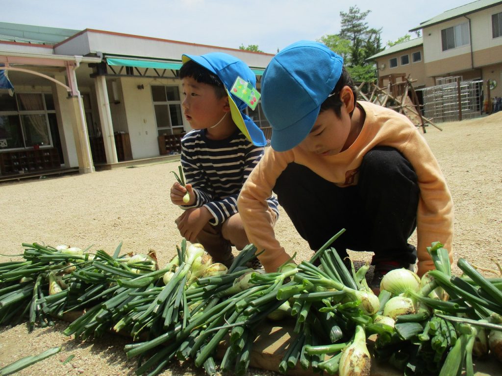 2023年04月28日 収穫したよ 5歳児 そら 玉ねぎを収穫しました。初めはどんな玉ねぎが収獲できるか楽しみだったこどもたち。 いろいろな大きさの玉ねぎがあり、こどもたちもびっくり。 たくさん収穫できると、「先生みて!」「取れたよ」と教えてくれました。 友だちとも見せ合い、「大きいね」と言い合いっこをしていました。 一覧へ戻る