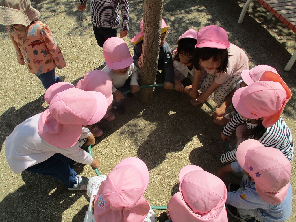 2023年05月01日 色おに 3歳児 つき 園庭で色おにをしました。 鬼に言われた色を園庭の遊具などから探します。 友だちの後ろを追いかけたり、「ここにもあるよ」などと教えている姿もみられました。 たくさんの色を探して走り、身体を動かしました。 一覧へ戻る