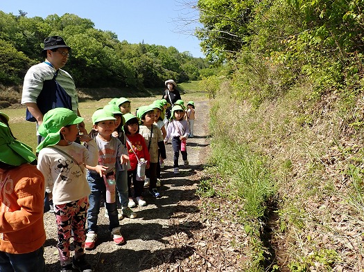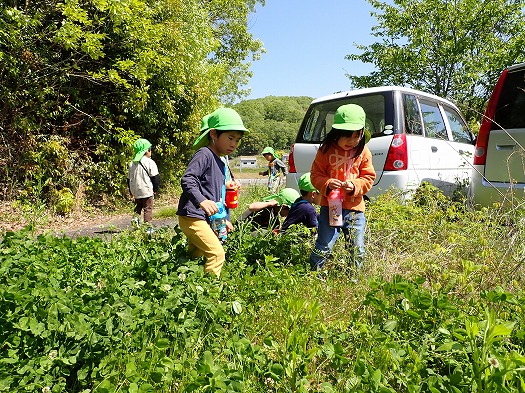 2023年04月28日 よもぎ摘みへGO 4歳児 ほし 給食室からお願いされたという設定で裏山へ散歩&よもぎ摘みに行きました 給食室からお願いされたのだから、とがぜん張り切るほし組 どこにあるのか、どれがよもぎなのか、必死に探します 途中、昆虫たちの誘惑にも負けることもありましたが、少しよもぎを摘むことができました おやつに出たフルーツヨーグルトによもぎをトッピング 散歩に行ったその日のおやつによもぎをだしてもらいました 自分たちが摘んだよもぎの味はいかがだったかな (乾燥パセリのようになっていましたが・・・) 一覧へ戻る