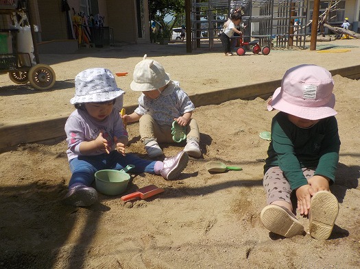 型抜きをするのはまだ難しいですが、型抜きに上手に砂を入れて楽しんでいました。