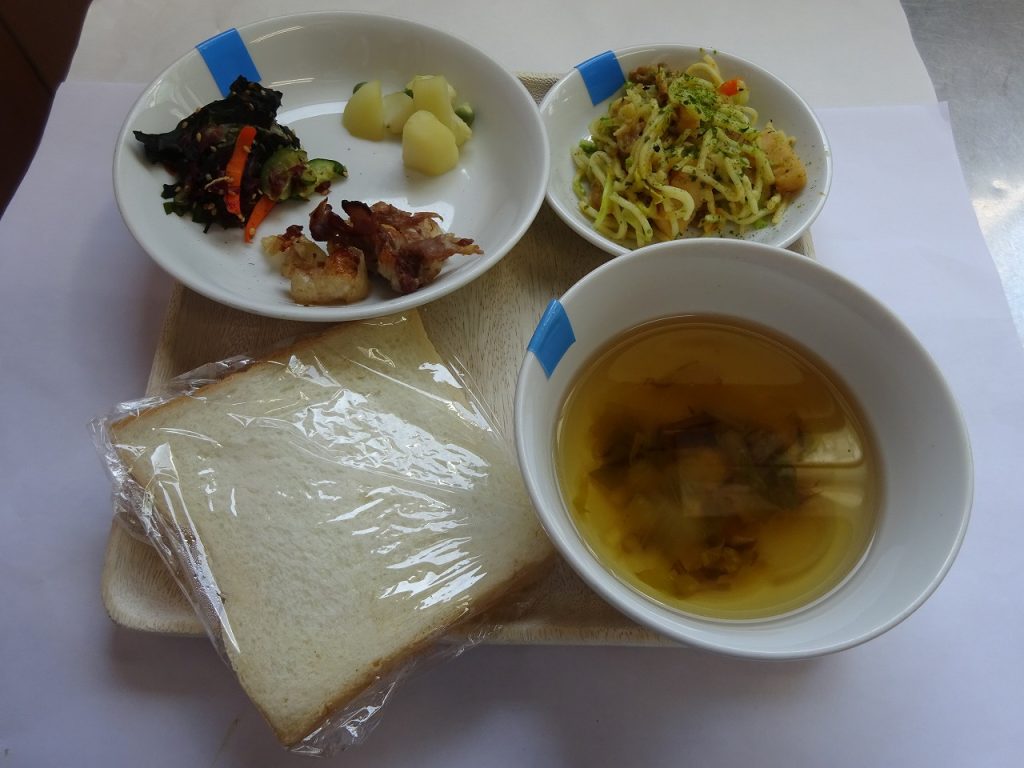 2023年05月29日 給食室(5月16日の給食、おやつ) 給食室 昼食 ・食パン ・豚肉のマーマレード焼き ・野菜のコンソメ煮 ・海藻サラダ ・新玉ねぎのスープ おやつ ・海鮮塩焼きそば 『野菜のコンソメ煮』には、 じゃがいもとグリンピースが入っていました。 グリンピースをそら組さんがさやから取り出してくれました。 『新玉ねぎのスープ』は、 玉ねぎの甘味とセロリの風味で飲みやすかったです。 おやつは、えびといかの入った『海鮮塩焼きそば』でした。 味付けはスープストックと塩こしょうだけです。 一覧へ戻る